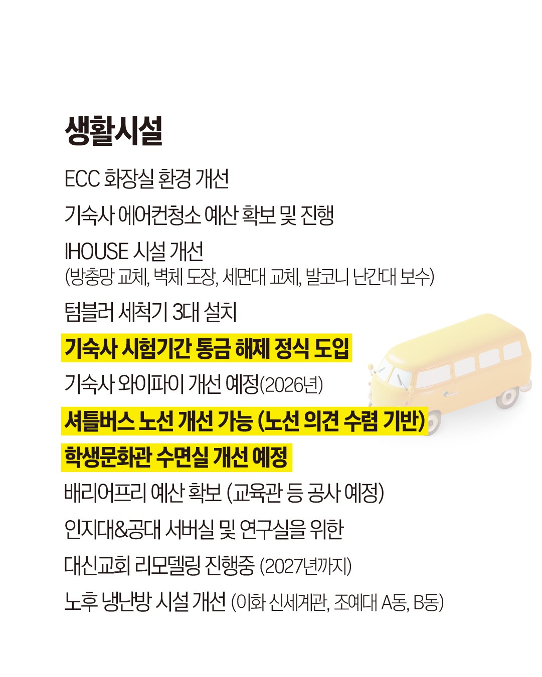 ‘์ํ์์ค’์ด๋ผ๋ ์ ๋ชฉ ์๋ ํ์ฅ์ค ํ๊ฒฝ ๊ฐ์ , ๊ธฐ์์ฌ ์์ด์ปจ ์ฒญ์ ์์ฐ ํ๋ณด, ์ ํ๋ฒ์ค ๋ ธ์ ๊ฐ์ , ์๋ฉด์ค ๊ฐ์ ์์ ๋ฑ ๋ด์ฉ์ด ์ ํ ์๋ค. ํ๋จ์๋ ๋ ธ๋์ ๋ฏธ๋๋ฒ์ค ๊ทธ๋ฆผ์ด ์๋ค.