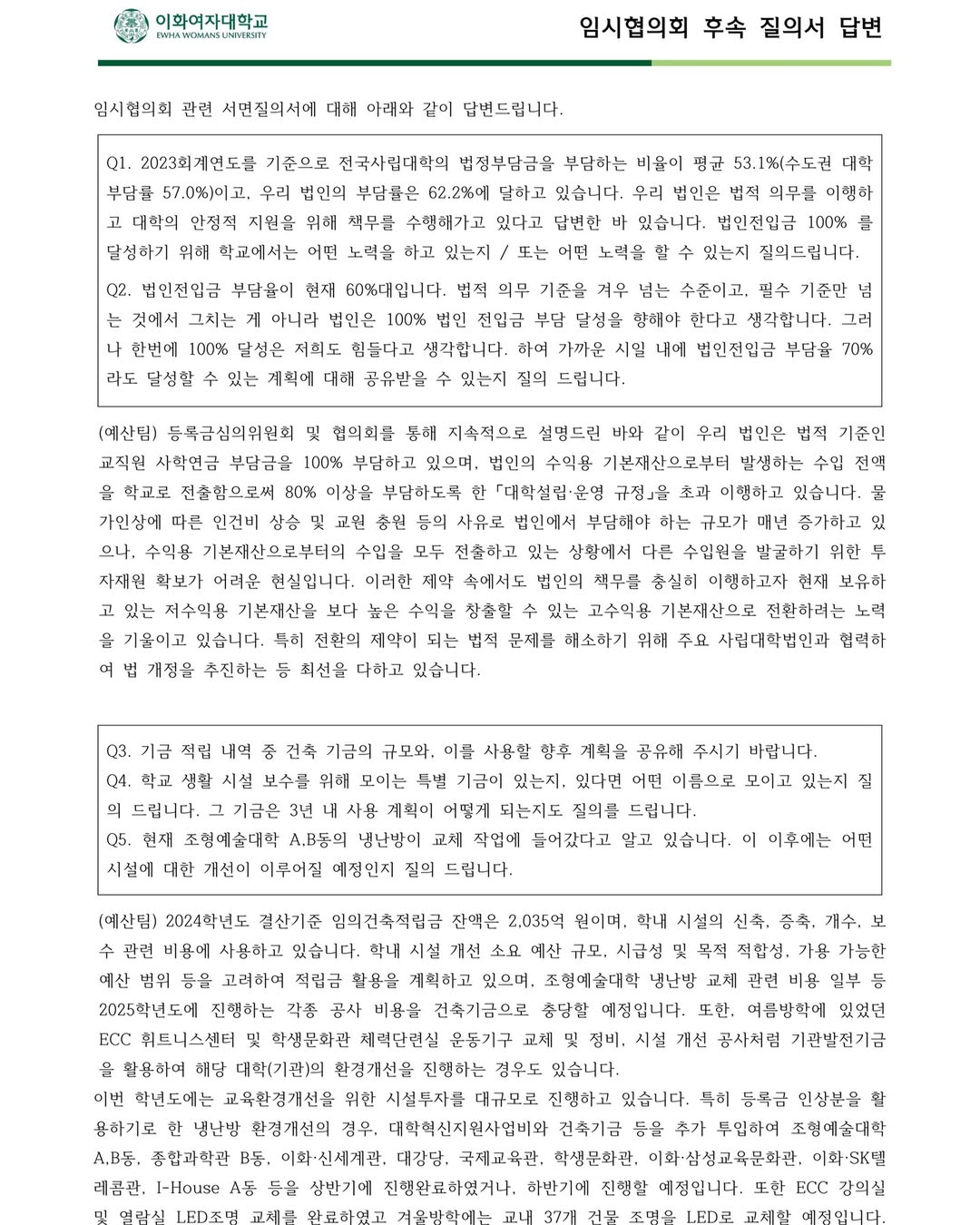 ๐ฅ Discussion on Ewha Students’ Demands with Division Heads – Follow-up Inquiry Report from provisional meeting ๐ฅ