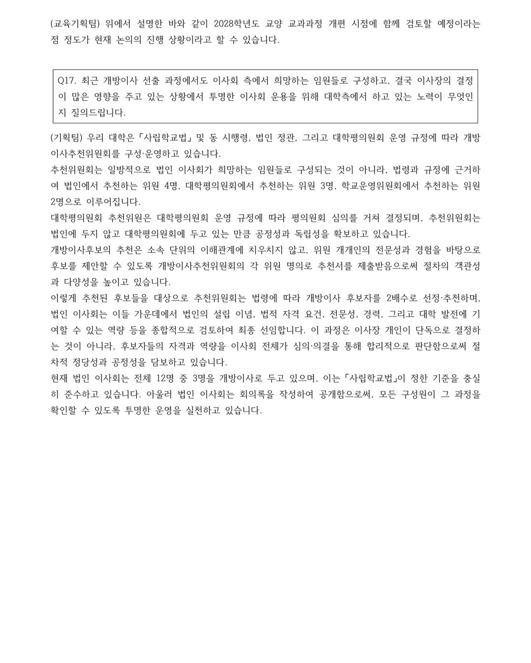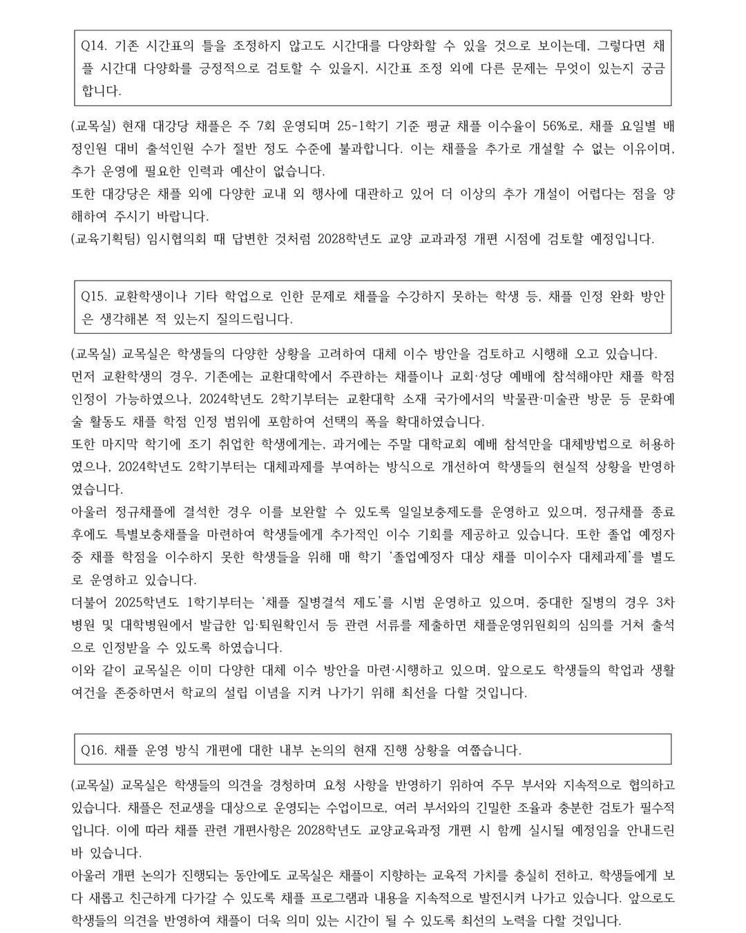 We are now releasing the school’s responses to the follow-up inquiry that the Student Government sent after the provisional meeting, which was held during the summer break.