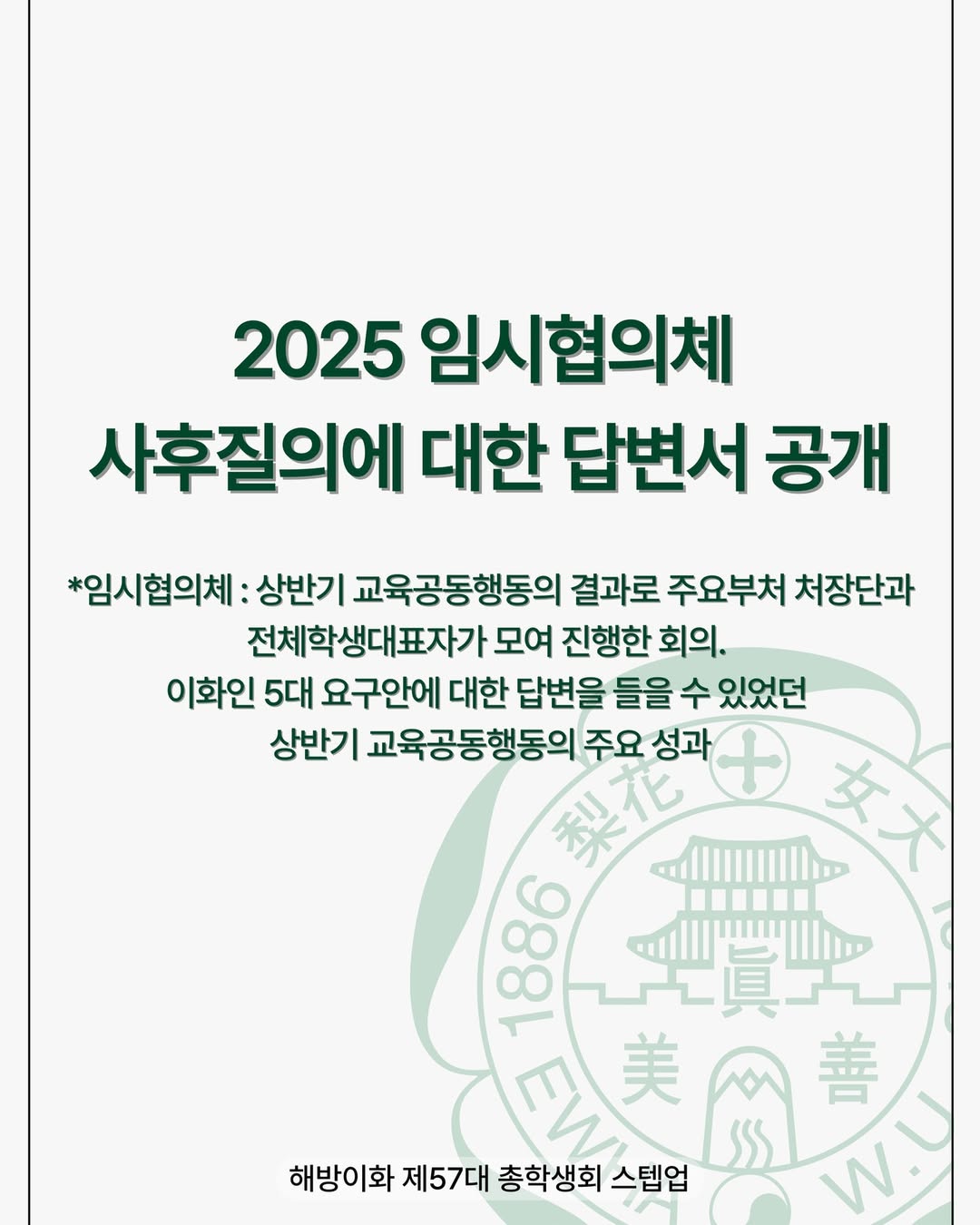 Hello, this is Step Up, the 57th Ewha Womans University Student Council.