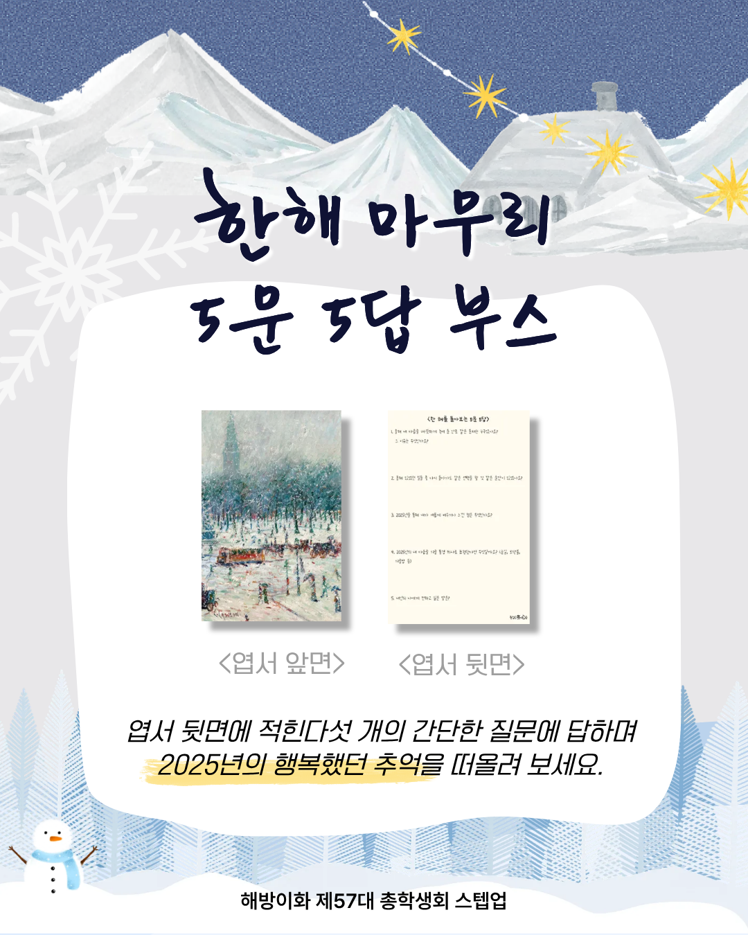 2. 5 Questions, 5 Answers Booth: Reflect on your past year by completing a short Q&A and wrap up 2024 with joy. ๐