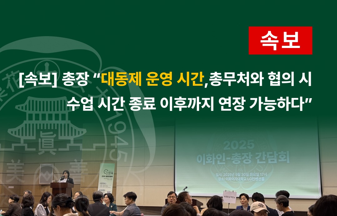 20250930 [속보] 총장, 대동제 운영 시간, 총무처와 협의 시 수업 시간 종료 이후까지 연장 가능하다
